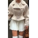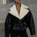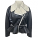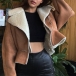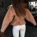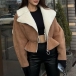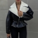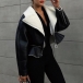 Fashion Plush Lined Notch Lapel Long Sleeve Slant Zipper Crop Jacket