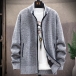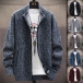 Fashion Plush Lined Stand Collar Long Sleeve Knitted Cardigan for Men