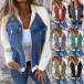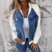 Fashion Plush Spliced Denim Front Zipper Hooded Jacket