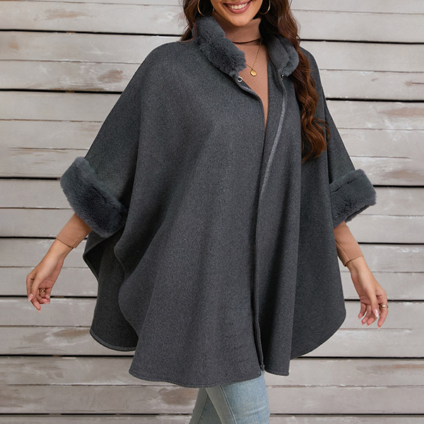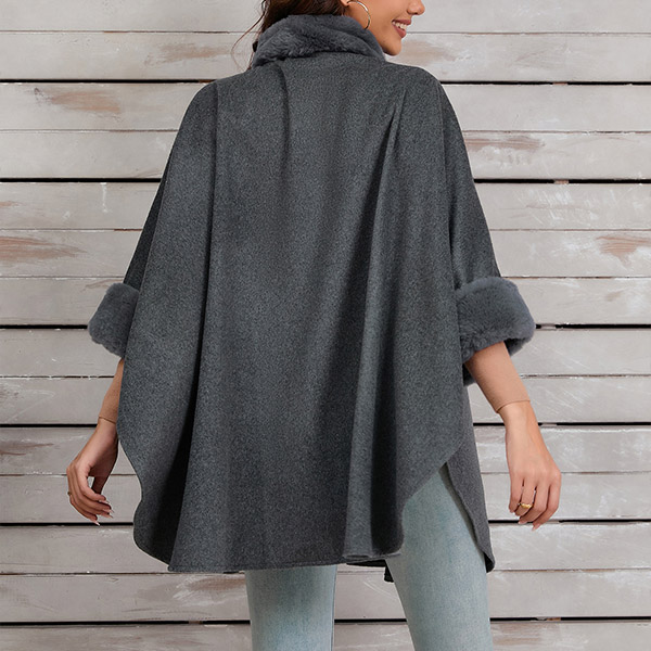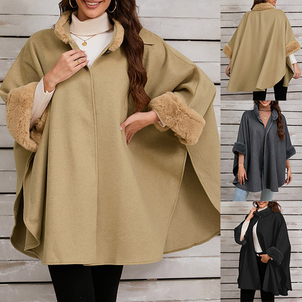Fashion Plush Spliced Elbow Sleeve Side Slit Cape--Poncho for Women