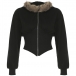 Fashion Plush Spliced Hooded Long Sleeve Front Zipper Crop Sweat-jacket