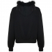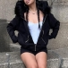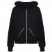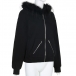 This jacket features plush fabric splicing along the hood, long sleeves, a front zipper closure, and a modern silhouette, creating a chic and on-trend look that is perfect for chilly weather.