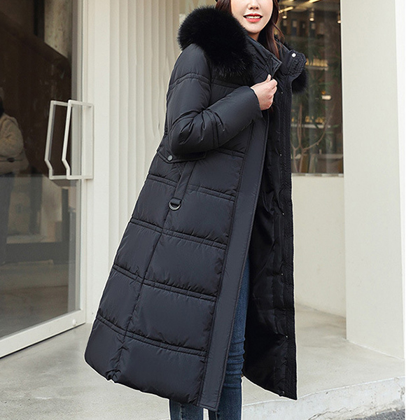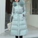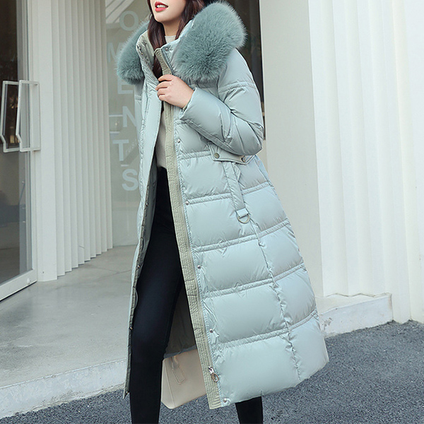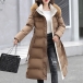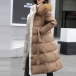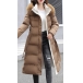 Veste matelassée longue pour femme avec ceinture, manches longues et capuche en peluche