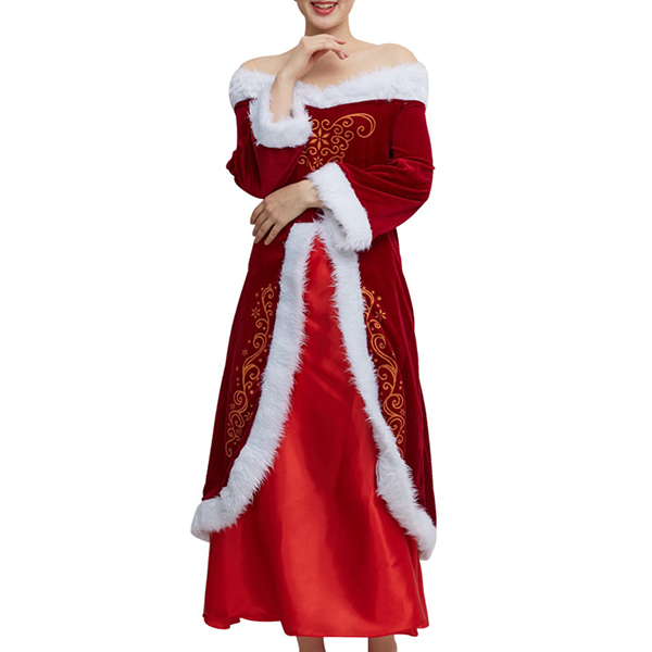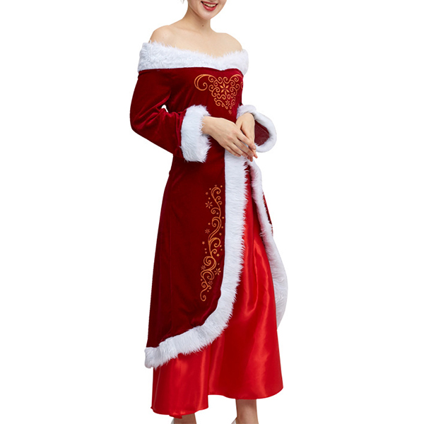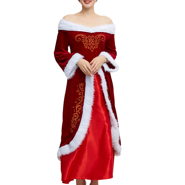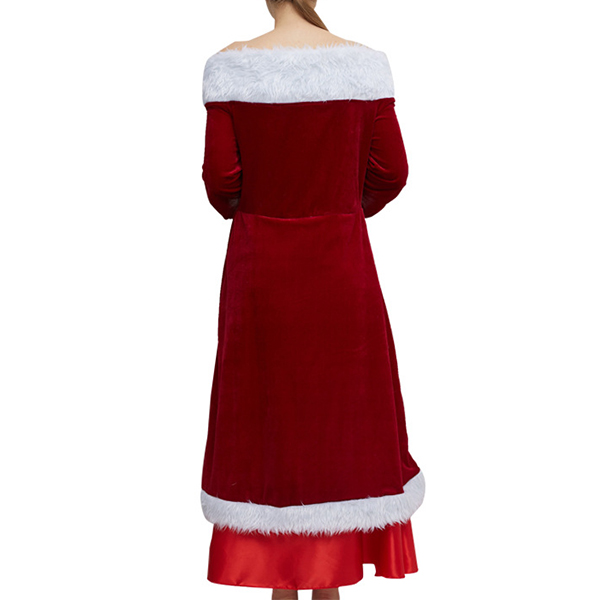 Fashion Plush Spliced Off-the-shoulder Long Sleeve Christmas Dress for Party