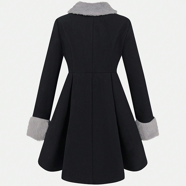 Fashion Plush Spliced Stand Collar Long Sleeve Duffle Coat for Women