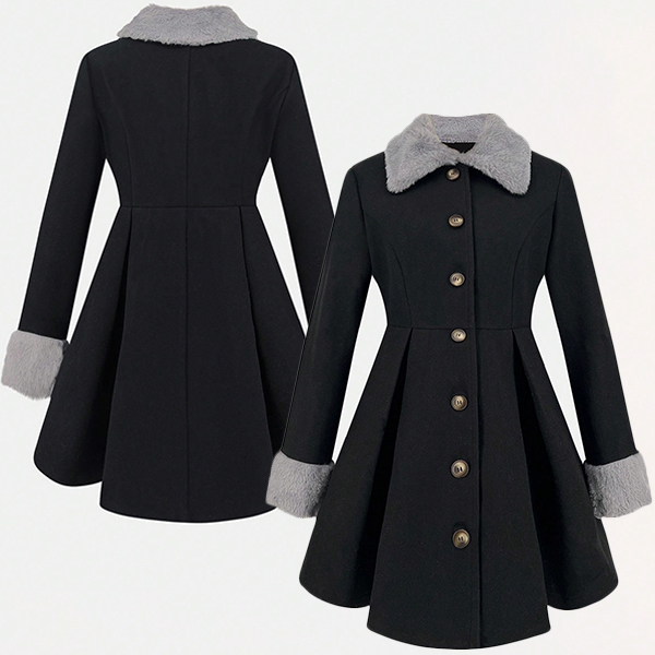 Crafted with high-quality materials, this duffle coat offers both comfort and style. The plush spliced detailing adds texture and visual interest, creating a unique and luxurious look. Wanna have a try?