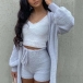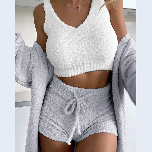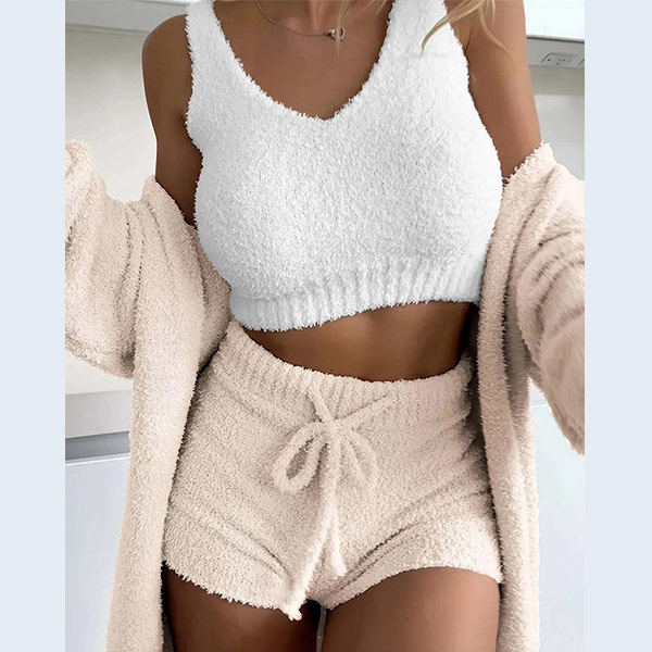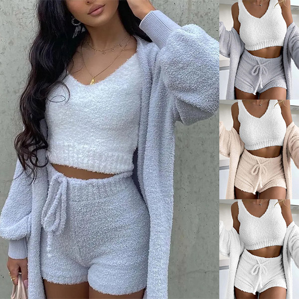 This set is the perfect combination of comfort and style. The plush fabric adds a cozy and luxurious feel, making it perfect for lounging or casual outings. Multi-colors available.