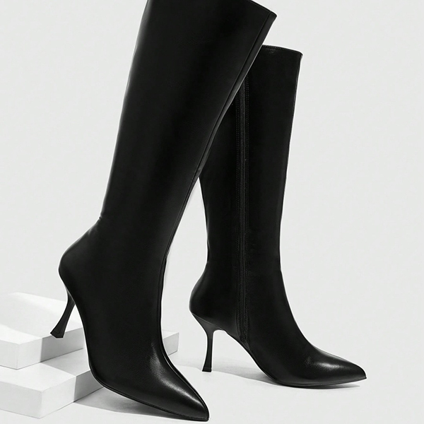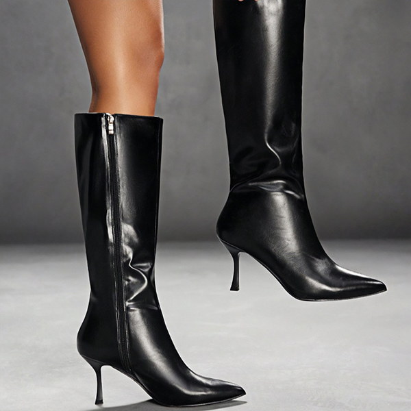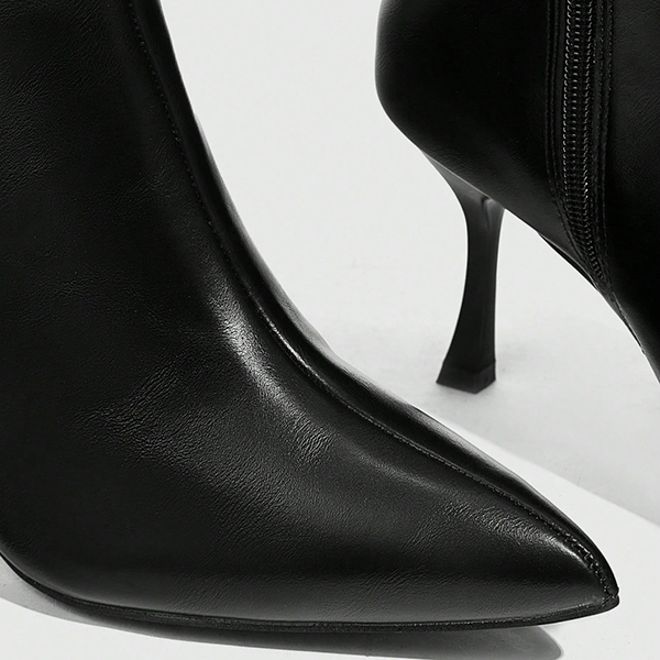 Fashion Pointed-toe Side Zipper Artificial Leather PU High-heeled Booties