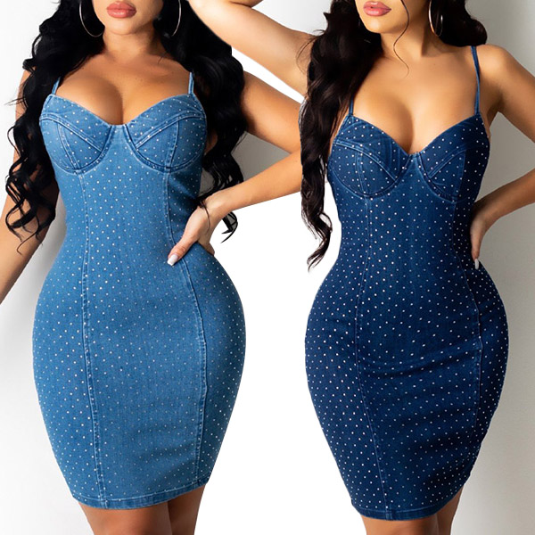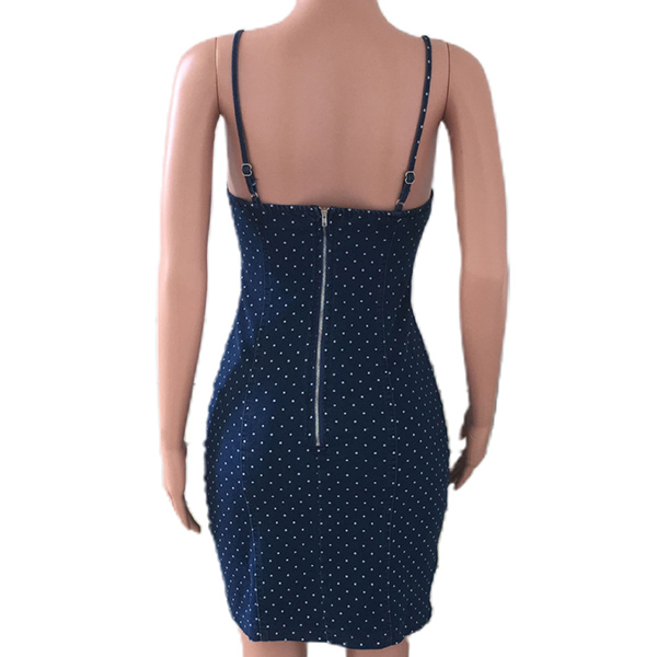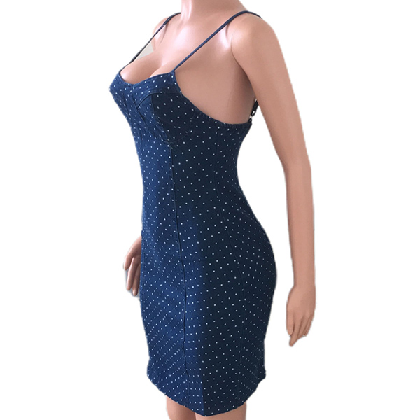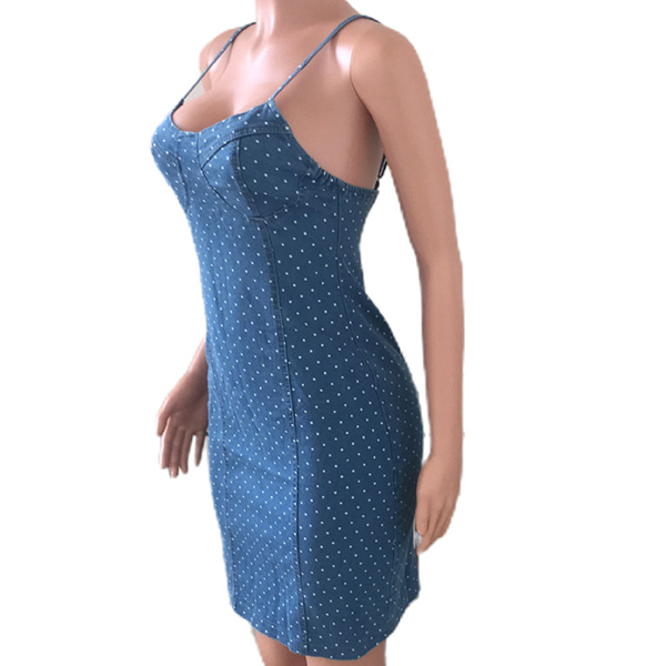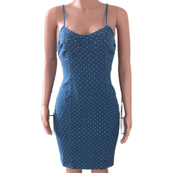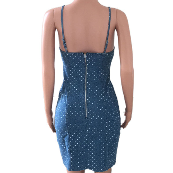 Fashion Polka-dot Printed Bodycon Denim Dress