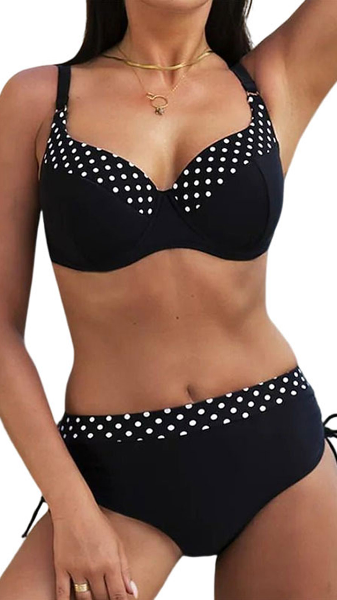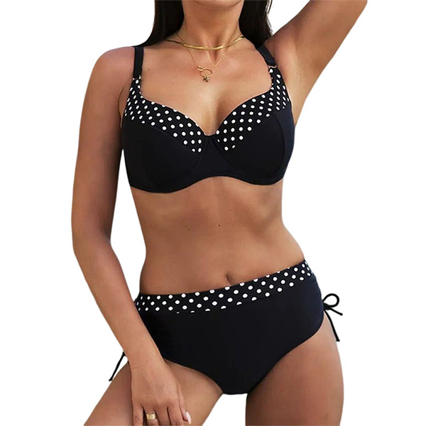 Fashion Polka Dot Printed Drawstring Bikini Set