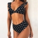 Fashion Polka-dot Printed Pom-pom Tassel Bikini Set consist of Halter Bikini Top and Low-rise Bikini Bottom