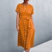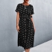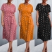 Fashion Polka-dot Printed Short Sleeve Buttoned Self-tie Dress