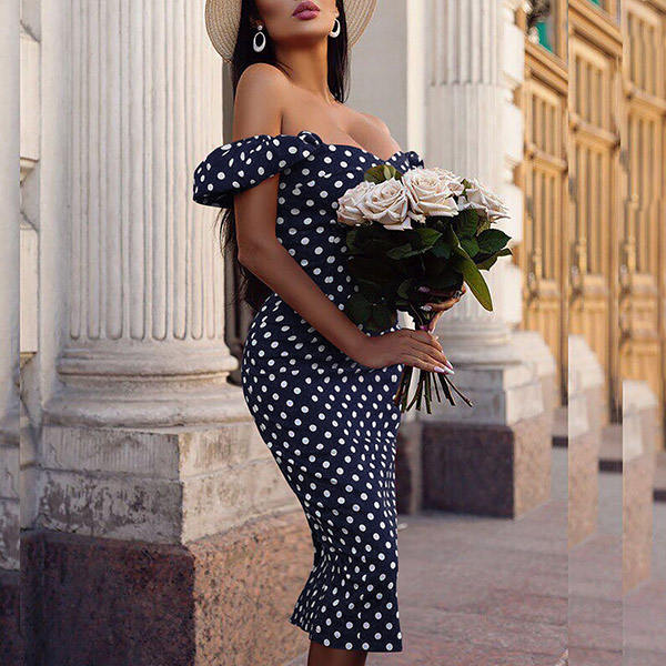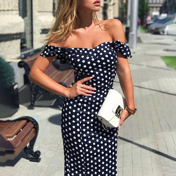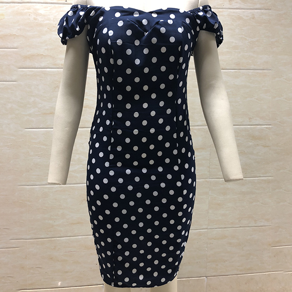 Fashion Polka-dot Printed Strapless Bodycon Party Dress