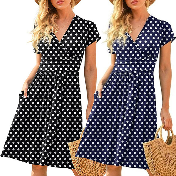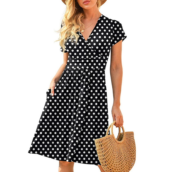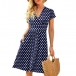 Fashion Polka-Dot Printed V-neck Short Sleeve Fit & Flare Dress