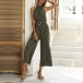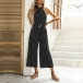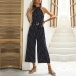 Fashion Polka-dot Printed Wide-leg Halterneck Jumpsuit with Belt