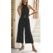 This jumpsuit features a polka-dot print, which adds a fun and playful element to the overall design. The wide-leg silhouette creates a flowy and relaxed look, allowing for comfort and ease of movement.