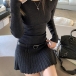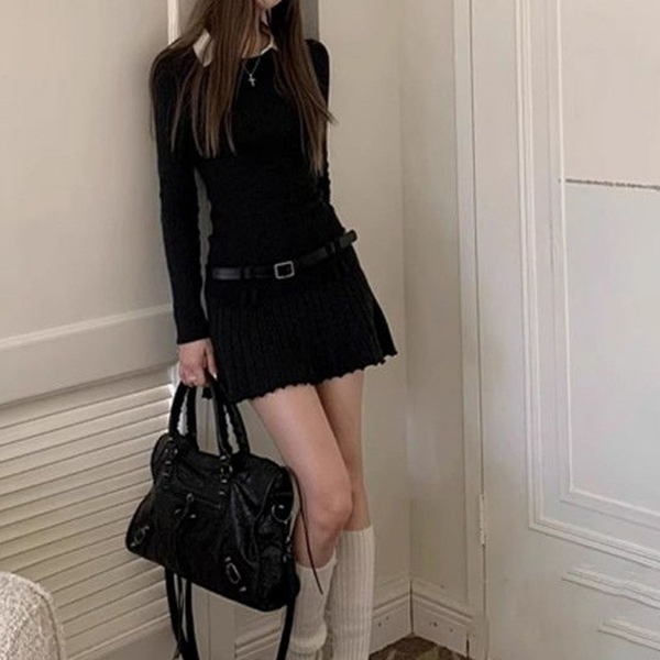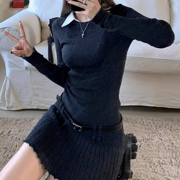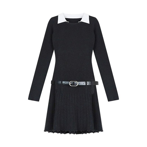 This mini dress features classic polo-collar styling with refined pleated hemline construction and complete long sleeve coverage for contemporary preppy elegance. Pair with sneakers and preppy accessories for sophisticated casual appeal