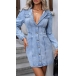 Fashion Polo Neck Long Sleeve Front Button Cinch Waist Old-washed Denim Dress