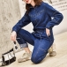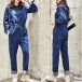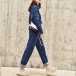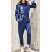 Cette combinaison en jean est dotée d'un col polo élégant, de manches longues et d'une fermeture à boutons sur le devant. Sa taille élastique et son tissu denim assurent un look à la fois chic et tendance.