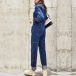 Combinaison en denim à manches longues, col polo, boutons devant et taille élastique