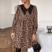 Fashion Polo-neck Long Sleeve Leopard Print Dress