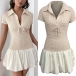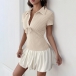 Fashion Polo V-neck Short Sleeve Ruffle Hemline Texture Dress