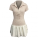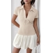 Look at this dress~The polo V-neck design offers a classic and preppy look, perfect for a refined and polished ensemble. The short sleeves provide comfort and coverage, while the ruffle hemline adds a touch of femininity and flair, creating a playful and romantic vibe. The texture of the dress adds visual interest and depth, elevating the overall aesthetic of the outfit. This dress is ideal for a casual day out, a brunch with friends, or a summer garden party.