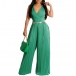 Fashion Polo V-neck Sleeveless Metal Belt Pleated Wide-leg Jumpsuit