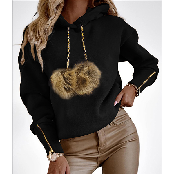 Fashion Pom-pom Chain Hooded Long Sleeve Zipper Sweatshirt