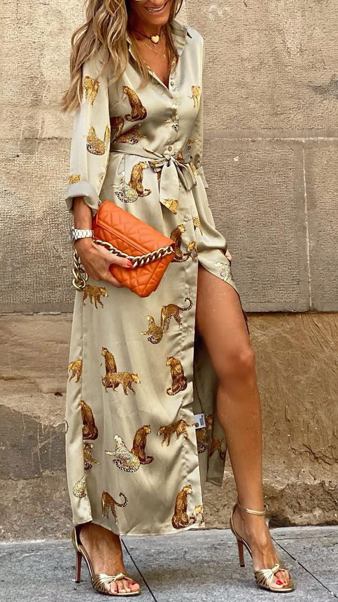 This stylish dress is the perfect addition to your wardrobe. It features an overall beautiful print, chic and stylish. The dress has a classic button-down front and a self-tie waist to create a comfortable, custom fit. The slit at the hem gives it a modern touch, while the lightweight fabric ensures it's comfortable enough to wear all day.