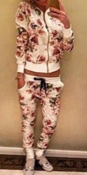 This sports suit features sweet and romantic printed style,including a long sleeve