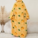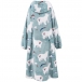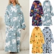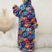 Fashion Printed Hooded Long Sleeve Kangaroo Pockets Plush Longline Loungewear-Plush TV Blanket Wearable Blanket