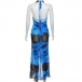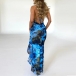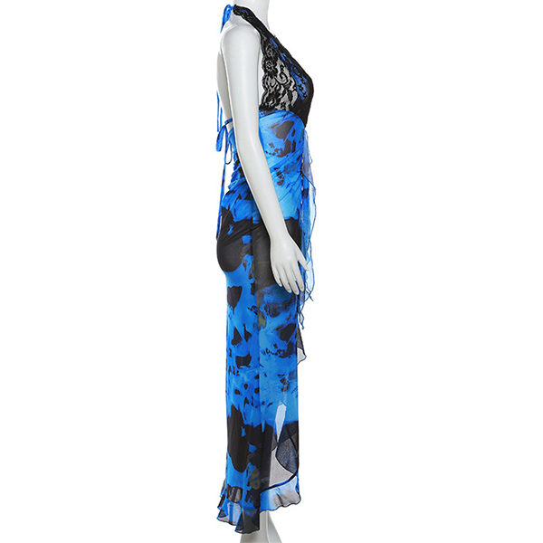 Fashion Printed Lace Spliced Halter Neck Irregular Hemline Backless Dress