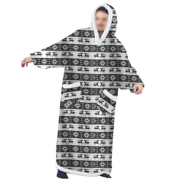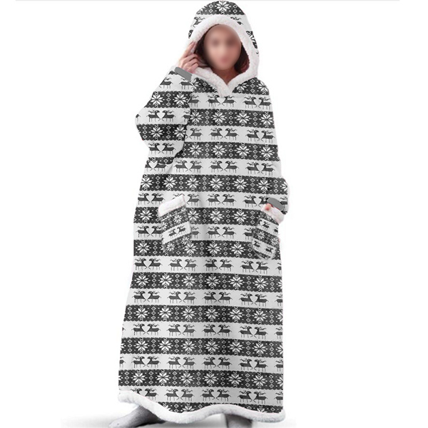 Fashion Printed Long Sleeve Hooded Front-pocket Faux Lamb Wool TV Blanket for Christmas