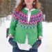 Fashion Printed Long Sleeve Round Neck Knit Cardigan