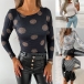 This long sleeve shirt is perfect for a fashionable look. The round neck and long sleeves give it a stylish look, while the printed design makes it unique. It's made from a soft and comfortable material, making it perfect for everyday wear.