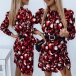 Featuring a round neckline and puff long sleeves, this dress exudes a chic and playful vibe. The printed design adds a unique and eye-catching element, making it a standout piece in your collection.