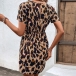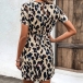 Fashion Printed Round Neck Short Sleeve Self-tie Mini Dress