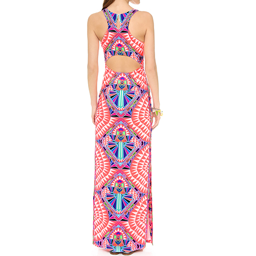 Fashion and eye-catching print design makes a lasting impression for people. Outfitted with round neck, sleeveless, hollow out and irregular