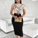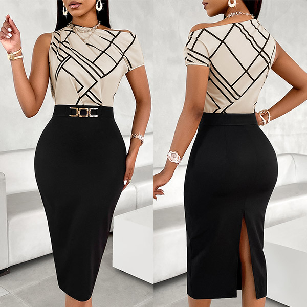 This bodycon dress combines a printed design bodice with a ruched details. The aystemeric shoulder details add some chic element to the dress~While the bodycon silhouette for a fashionable and eye-catching look. Wanna have a try?