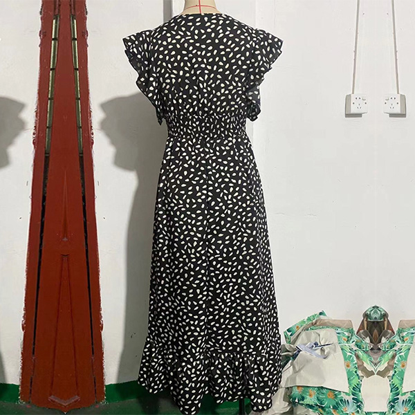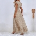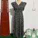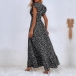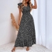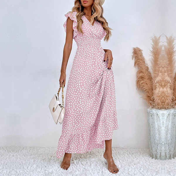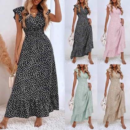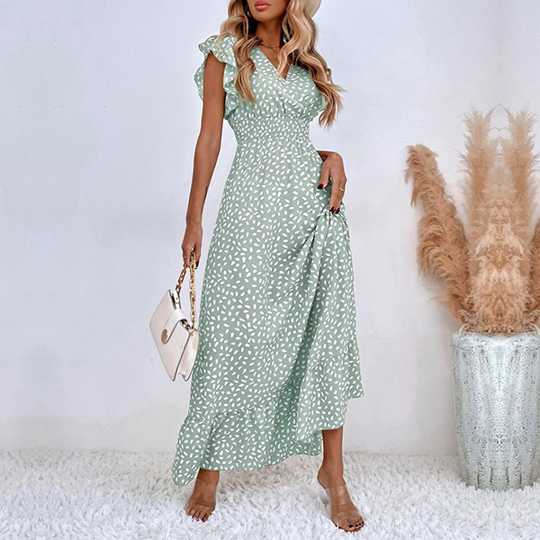 Fashion Printed Ruffled Short Sleeve V-neck High-rise Maxi Dress