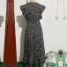 This is a fashionable maxi dress with a vibrant printed design, featuring a V-neckline, short ruffled sleeves, and a high-rise waistline. Its unique combination of design elements creates a stylish and feminine look.