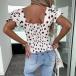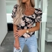 Fashion Printed Scoop Neck Puff Short Sleeve Shirt