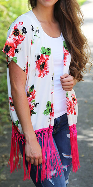 Wow,such a chic and stylish cardigan! Boasting a vibrant floral print,with short sleeve