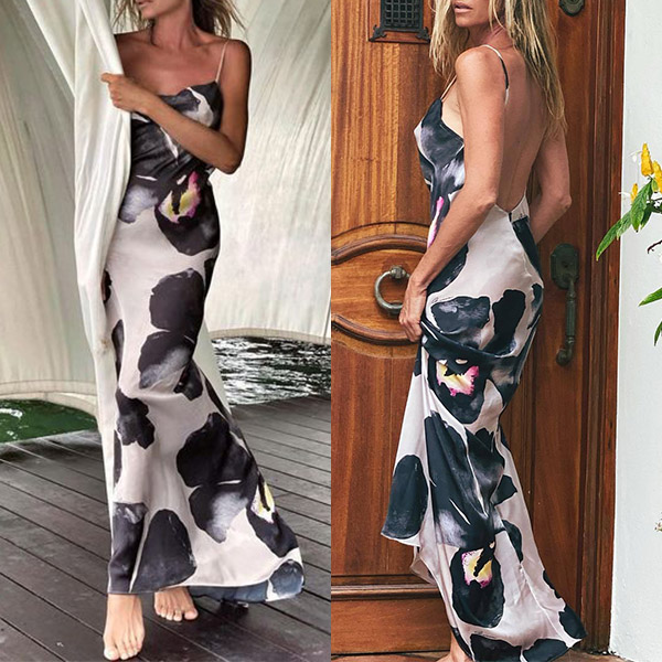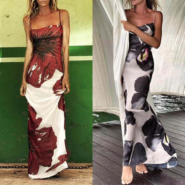 Flaunt your style in this fashionable maxi dress! Soft material, overall printed pattern, side slit, a square-cut neckline, and bodycon silhouette. Three patterns, ABC, which one do you like?