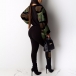 Fashion Printed Spliced Lantern Sleeve Top + Pants Two-piece Set