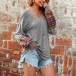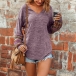 Thanks to the soft and breathable fabric,this t-shirt can promise you a comfortable day. Moreover,the printed spliced details,lantern sleeve and v-neck design make this piece look more stylish and attractive. No matter matching with what kind of bottoms,it can hardly go wrong!