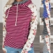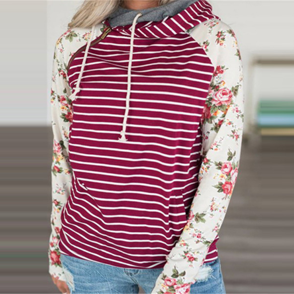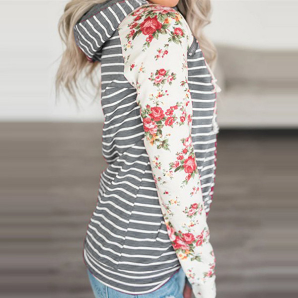 Fashion Printed Spliced Long Sleeve Hooded Striped Sweatshirt