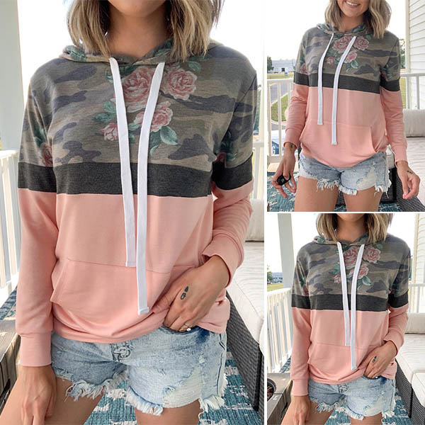 When it comes to a casual,relaxed yet stylish autumn style,you can just have a try this sweatshirt. The printed spliced details make it look not so simple and dull,while the long sleeve,hooded silhouette and front-pocket design maintain the classic design style. Like it? Then buy one!