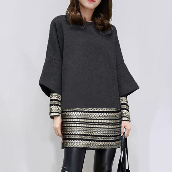 For a simple,chic yet stylish weekend look,you can have a try this dress. The printed spliced details at the cuff and hem part make this piece look not so simple,while its soft and breathable fabric can give you a comfortable day. Your simple yet lively personality will be on full display with the exceptional style of this dress.